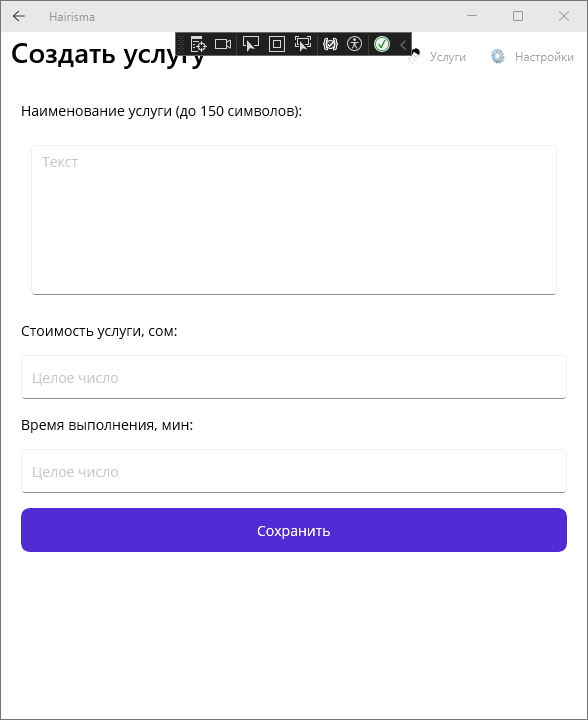 Далее из ранее созданного списка выбираете услугу и автоматически будет заполненна цена и время окончания.