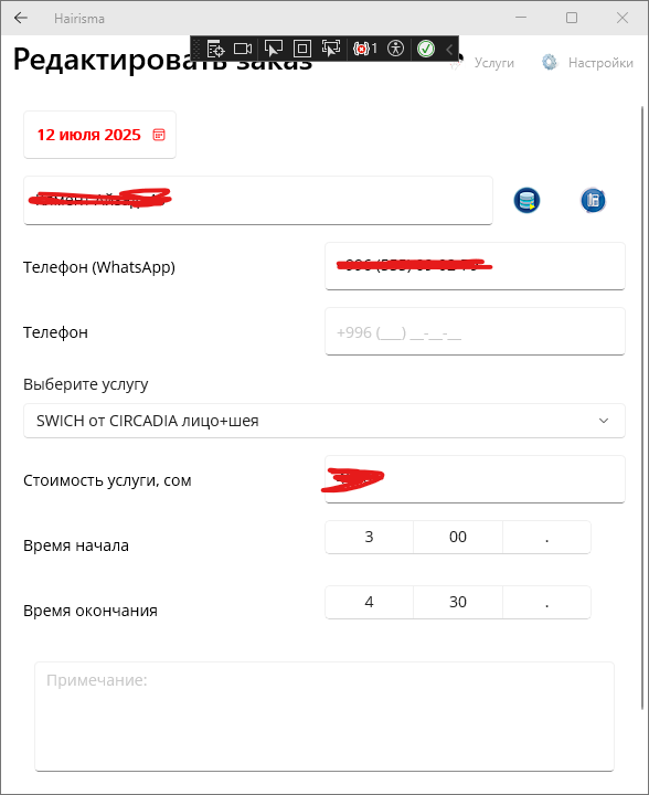 Программа для косметологов, да в принципе и не только, для людей оказывающих услуги ограниченные коротким сроком по времени и имеющие фиксированную стоимость. Да тетрадка это надёжно, но цифровой век на дворе.