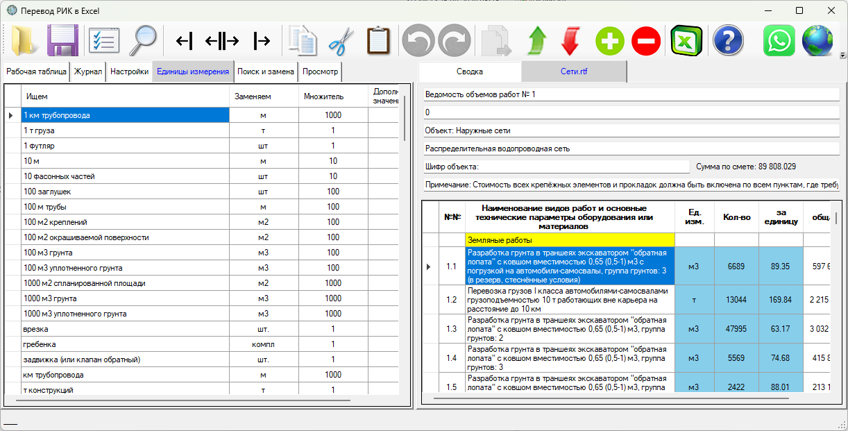 Единицы измерения - словарь для замены единиц измерения и коэффициента пересчёта