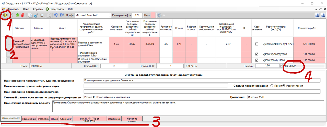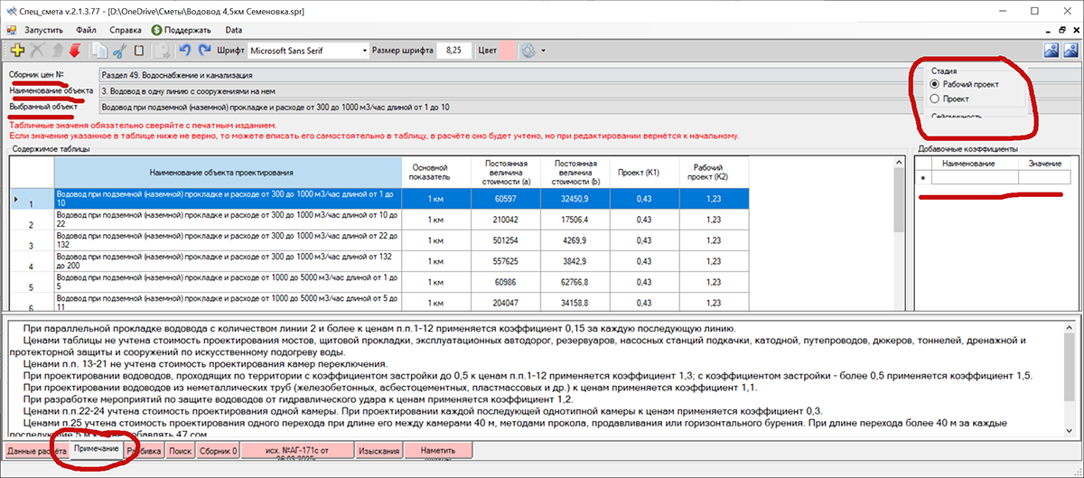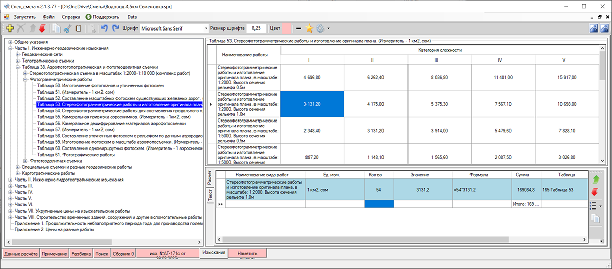 Изыскания - это два огромных сборника, я набрал только Часть I скажем так в виду большого количества таблиц - тут был изменен интерфейс и принцип работы, по сути всё сводится к выбору таблицы, затем двойным кликом будут перенесены значения в сводную таблицу, в которой будет выполнен расчёт.